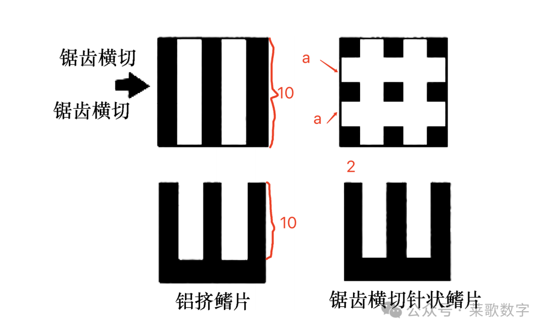 如果锯齿切除的部分比鳍片厚度大时,即a≥2,